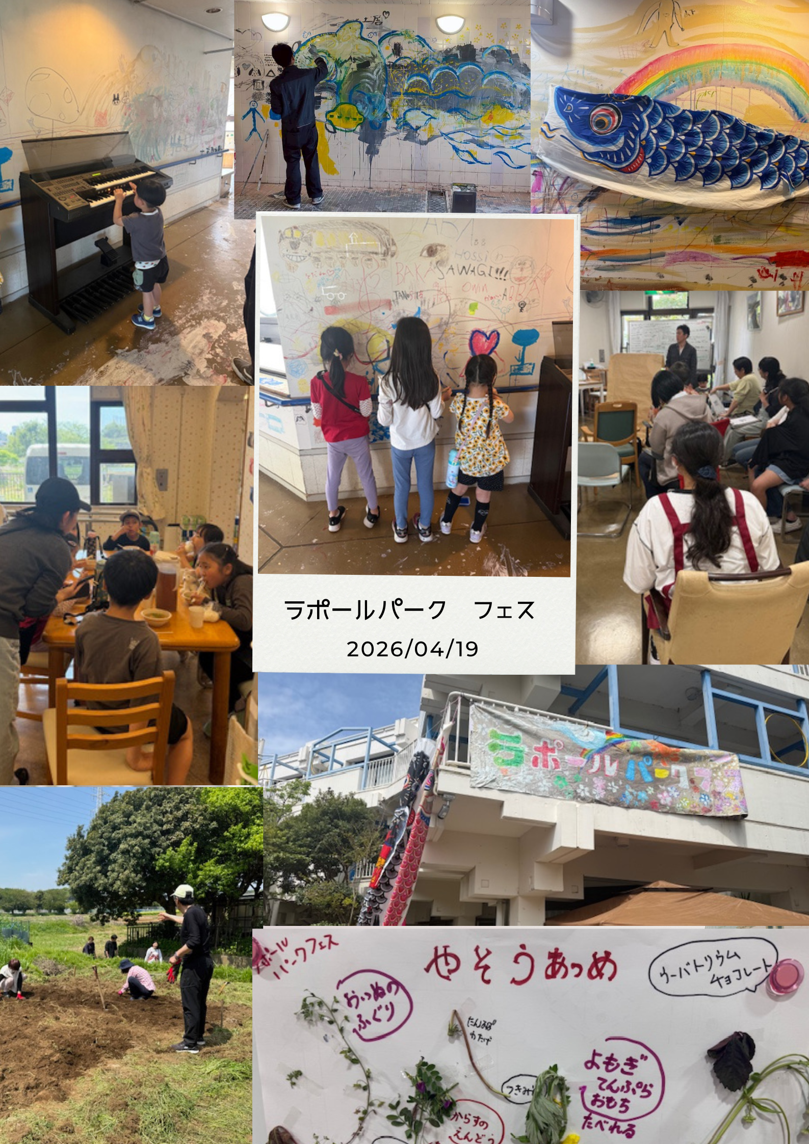 第9回ラポールパークフェスではラクガキアートに畑、野草探検、メダカすくい、こどもマーケットとお天気にも恵まれ、たくさんの方がそれぞれの時間を楽しんでいました。お昼は藤沢産のお米で作った塩むすびと豚汁。今回は静岡から来た笑いヨガの講師ジャスミンさんが「いただきます!」の掛け声を笑いヨガで。午後からはひきこもりをアートの力で克服した当事者と一緒に参加型の車座学習会。他にもひきこもり経験のある方や、メンタル不調の経験を経た参加者の話も聞きながらみんなで考えみんなで学ぶ貴重な時間を過ごしました。次回は6月7日、お気軽にご参加ください!